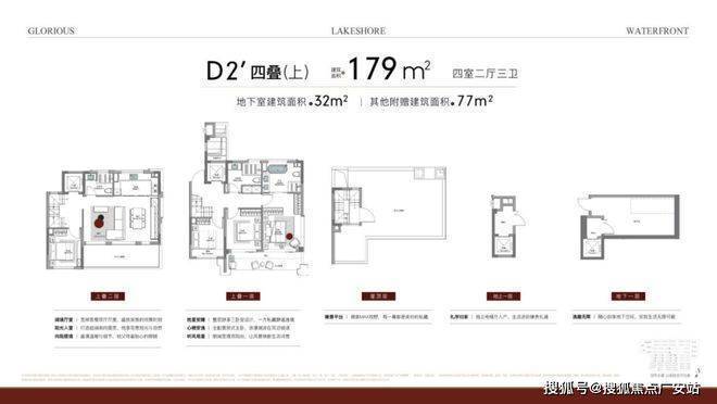 超高得房率,179㎡≥288㎡!除了常规套内空间,更设计有约32㎡地下室、约77㎡超享空间,为别墅生活带来更多更多可能:第二会客厅、酒窖、私人藏馆、健身房、空中花房等,满足主人个性化的居住需求。