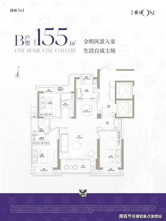 上海绿城黄浦ONE售楼处电话☎:400-891-9910(预约看房热线)中间套是155平的3房2厅2卫,采用最标准的3开间朝南飞机户型,重点是户内装标确实蛮顶的,玄关铺设鱼肚印象奢石,客厅背景墙采用意大利超白洞,卫生间台面和墙面采用芬迪白,地面铺设巴西进口静雅棕石材。