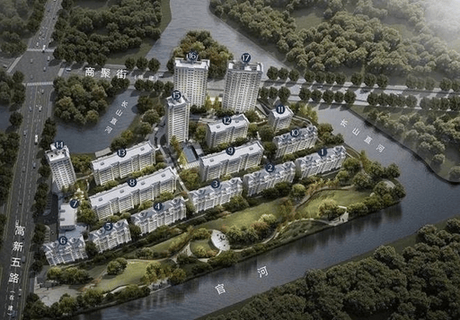 生态:三面环水(官河、郎家浜河),配2 万㎡滨水公园