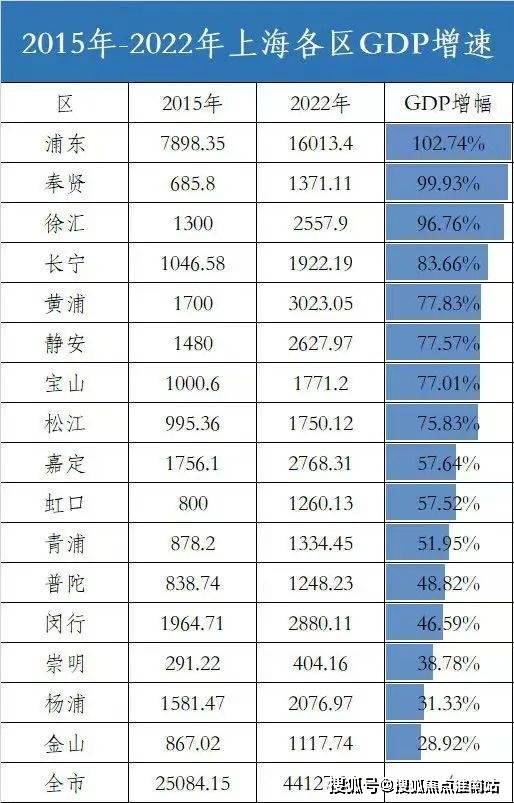 同时,根据2015-2022年的GDP增速调查数据发现,「上江南·璟荟名庭」所在的奉贤区以99.93%的亮眼成绩拿下全市16区GDP增速第二。