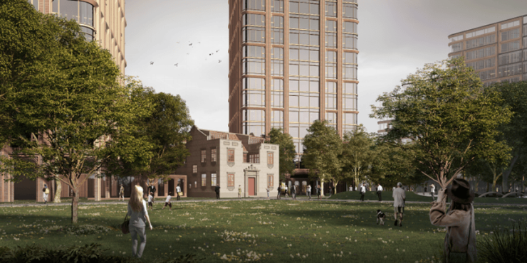 方案中规划的昼锦路目前还未东延至此,未来建成后,项目内将开辟昼锦路和方浜中路之间的公共绿地以及城市开放空间,着力打造成富有海派文化底蕴的历史风貌保护和城市更新经典片区。