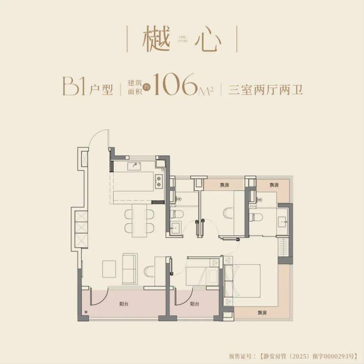 建筑面积约106㎡户型,更是以宽尺大横厅和270°的转角飘窗赚足了眼球, 阳光与清风自由流淌,居住舒适度全面提升。