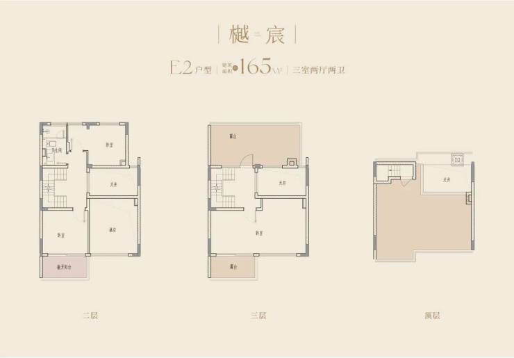 项目另有建面约165㎡联排别墅, 地上三层,地下一层的灵动格局,挑高负一层百变拓展空间,创变夹层、顶层私域,多元创变空间,可满足主人不同布局需求。南北多露台设计,家庭聚会、自由放空,生活的每一帧都是风景诗。三楼整层横向套房主卧,私享南北双露台,阔尺禀赋,将私密与考究极尽演绎。