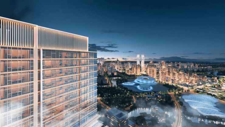 与此同时,杭珹未来中心毗邻未来科技文化中心(在建)与杭州西站,前者以“杭州国际性的新一代城市公共中心”的定位,推动第三中心的精神文化消费,后者则以世界级高铁枢纽,形成面向长三角乃至全国的辐射圈,让这片土地的人流、物流、产业、文化等资源高效交互,推动杭州第三中心加速国际化发展。