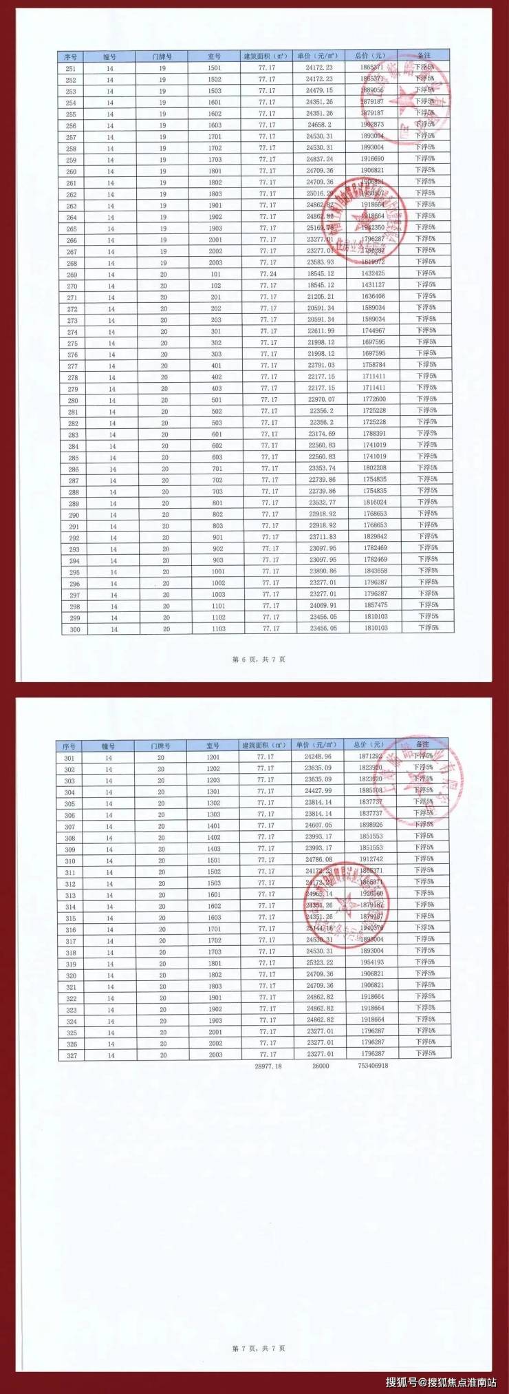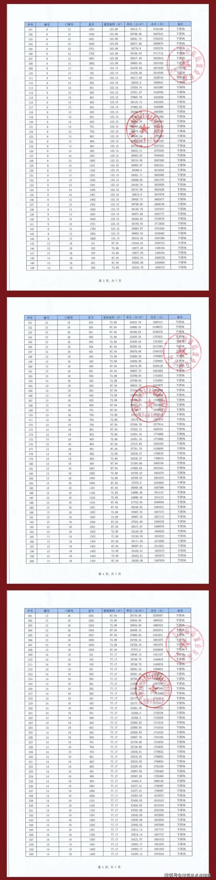 项目一房一价表
