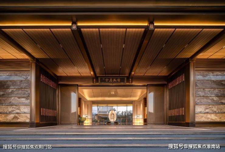 屋檐取形太和殿庑殿顶,两侧铜狮镇守、五步青云阶递进,涌泉灵动,琮黄色调沉稳铺陈。这不仅是归家的仪式,更是家族门风的当代写照,从第一眼即奠定东方礼序与不凡气场。