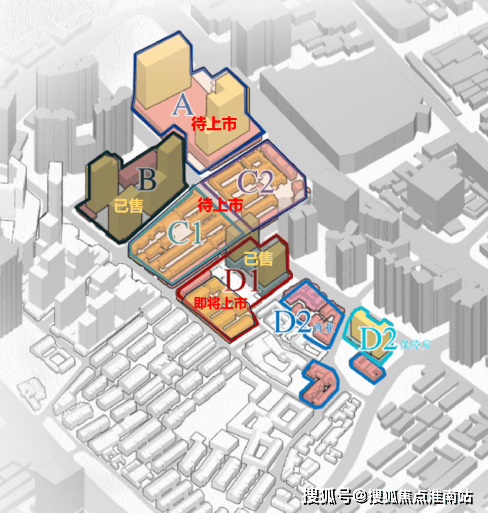 项目整体分为6个地块,即A、B、C1、C2、D1和D2。