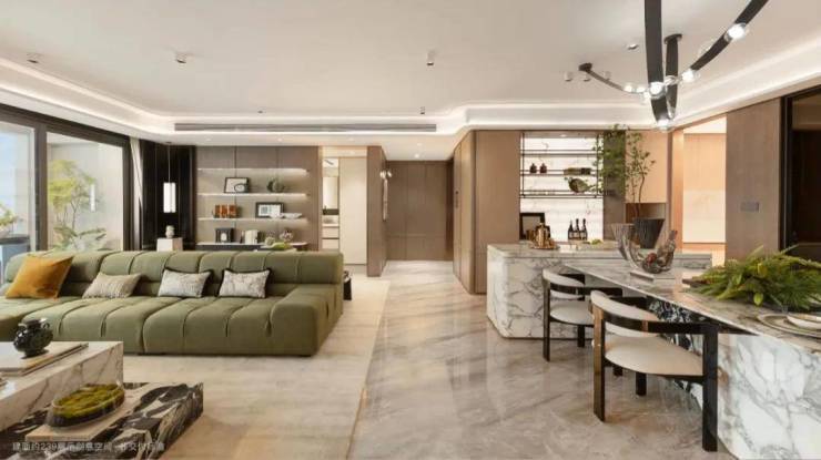 一体化动线,让一切并然有序,从电梯厅、入户玄关,到客餐厨再到卧室、卫浴、书房等各处视线所及,皆设有收纳空间同时提前预演居家细节与行为可能门口随手U厨、玄关&客厅整面宽尺墙柜一体化收纳动线,并然有序的生活一气呵成。