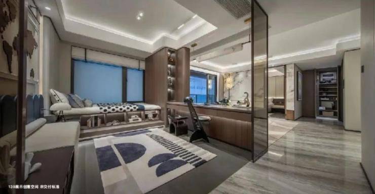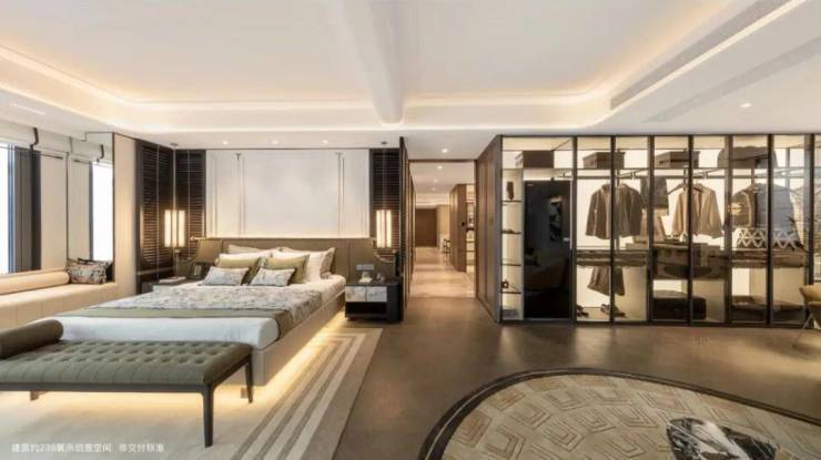 主卧“小家化”,面积达到了约50㎡(包含不计产权面积部分),以“总裁行政级套房”标准打造。270°超广角环景主卧+270°豪华风景卫浴间,与世界星级酒店生活保持同频。整个卧室如同一座空中庭院,全维采光通风。