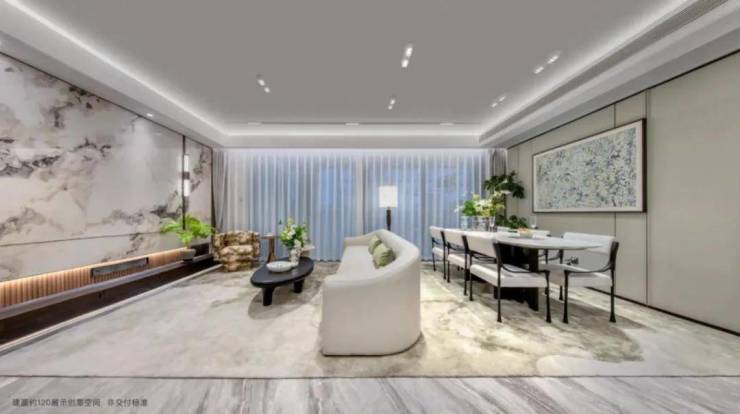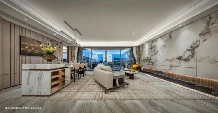 建发·云湖之城室内尺度进阶,打造了约19.9米南向面宽,带来了IMAX影院级巨幕效果,超级大平层视野宅家享受日光浴。整个空间LDKB一体化设计,将客厅、餐厅、厨房、阳台四个独立空间整合成多功能复合的“超大公区”,形成一个全景无界巨幕方厅。