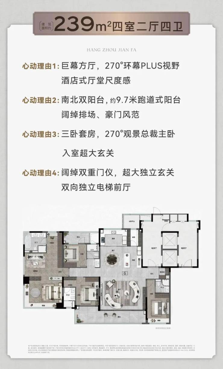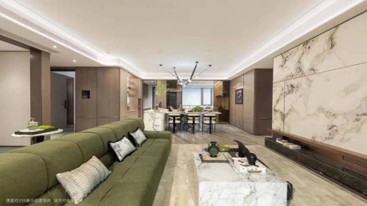 建面约239㎡采用双向入户电梯厅,双开门空间,配合奢雅的空间格局,步入其中,像是踏入了星级酒店式入户大堂。