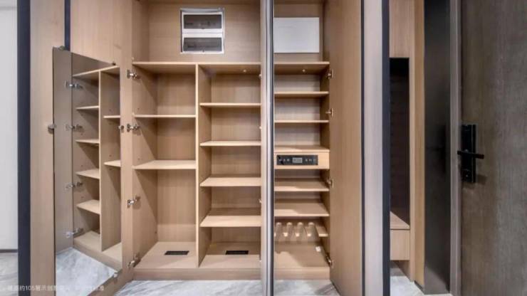 基于秩序美感,精细划分各大收纳空间,独立储物间创新采用800库设计,让每种生活用品皆能找到“专属之位”。玄关处、厨房、卫浴间等高频率使用场域或在转角、或在操作台两侧预留储物空间,打造更规整有序的收纳体验,从容面对生活琐碎。