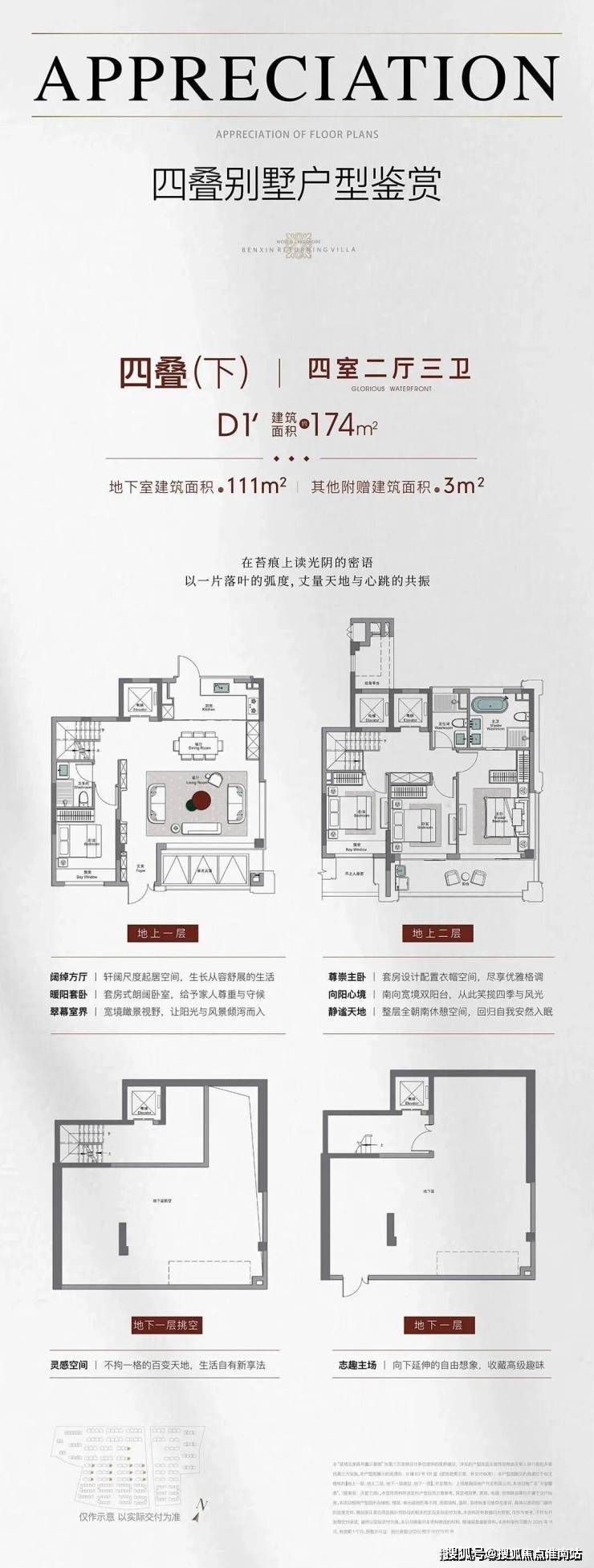 其中约174㎡下叠别墅,拥有超多奉赠空间——花园约138.7m²+地下室约111.26m² +其他附赠约3.42m²!174㎡>400㎡,超值享受!