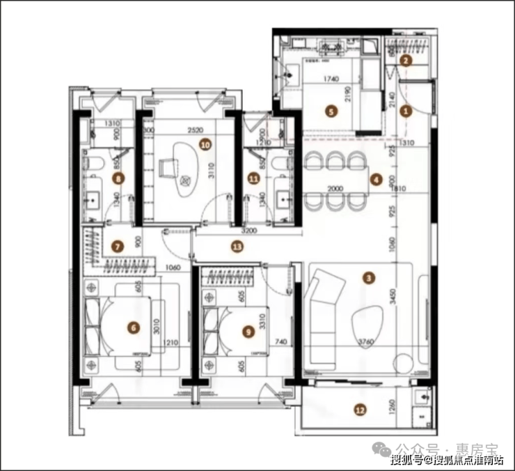 建面约132m3房2厅2卫共计112套,两梯四户边套无连廊影响,132平只做了三房布局,各空间尺度足够开阔,同样是经典的动静分离户型!