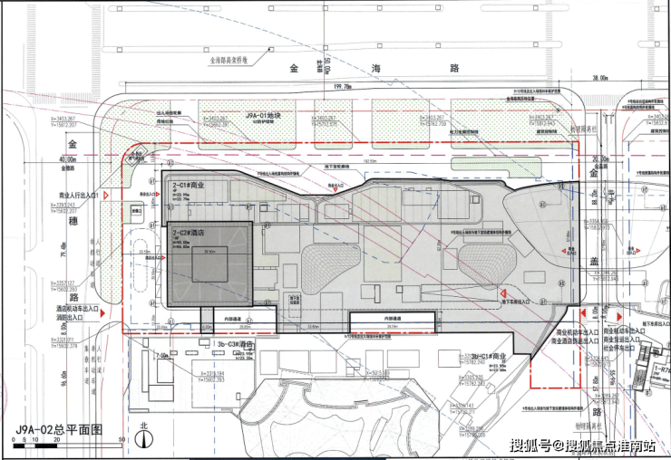 整个项目东至赣桥路(外环运河),南至桂桥路,西至金穗路,北至金海路,项目西侧就是由金桥集团开发的上海金湾!J9A-02地块:9、12号线地铁上盖,东侧是住宅部分,西侧是华为研发中心。该地块地上拟建设商业、酒店及酒店物业用房,其中,商业部分地上建筑面积36489.24㎡,酒店部分地上建筑面积20956.16㎡。