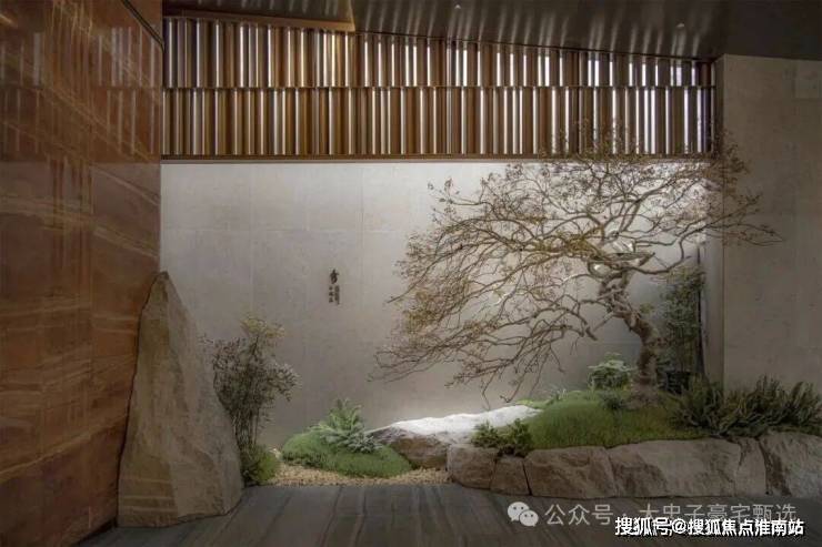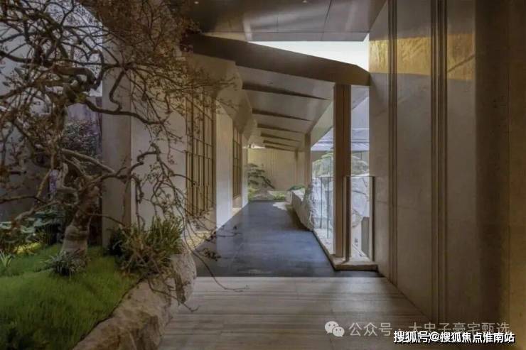为了使我们在稀缺的地段营造稀缺的资源,把生活的想象现实化,越秀·外滩樾还在会所引“山水入园”。在空间有限的情况下,进行垂直空间的挖掘,营造了坡道景观、山水庭院和会所。
