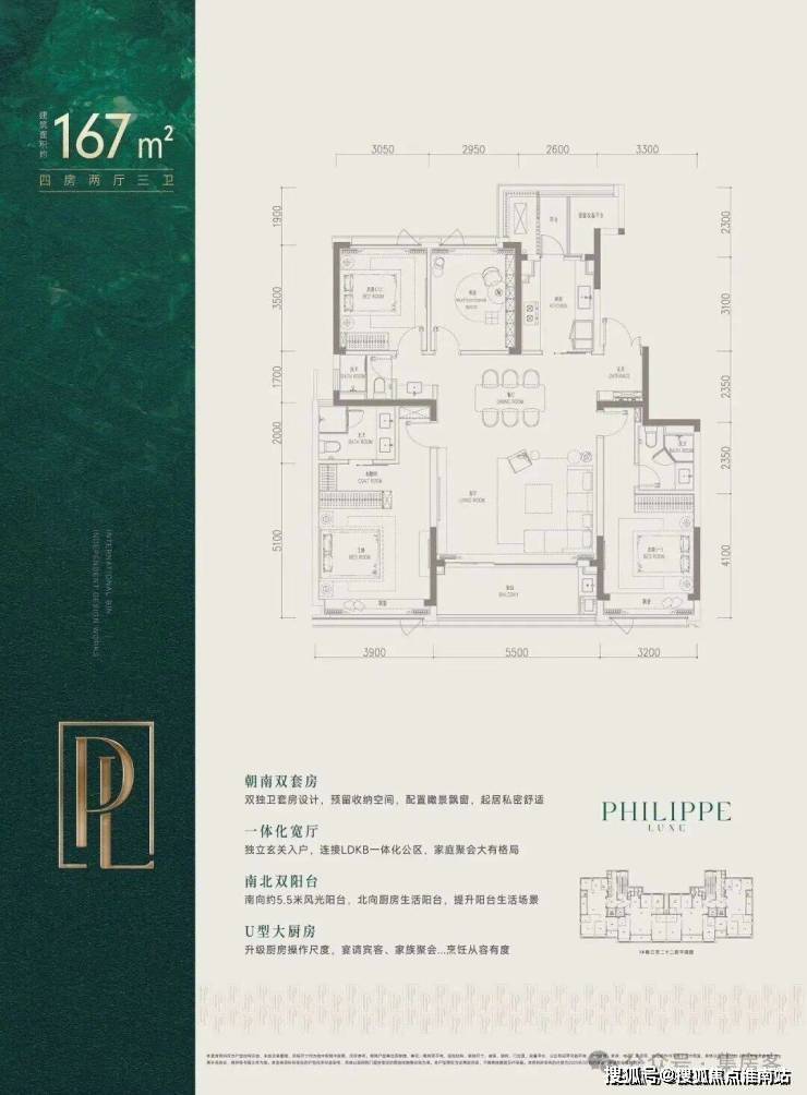 而建面约167㎡则是四房三卫格局,双套房设计,约40㎡的剧院式横厅,客餐一体,气场全开。市北、滨江的不少改善家庭,都在等它上线。