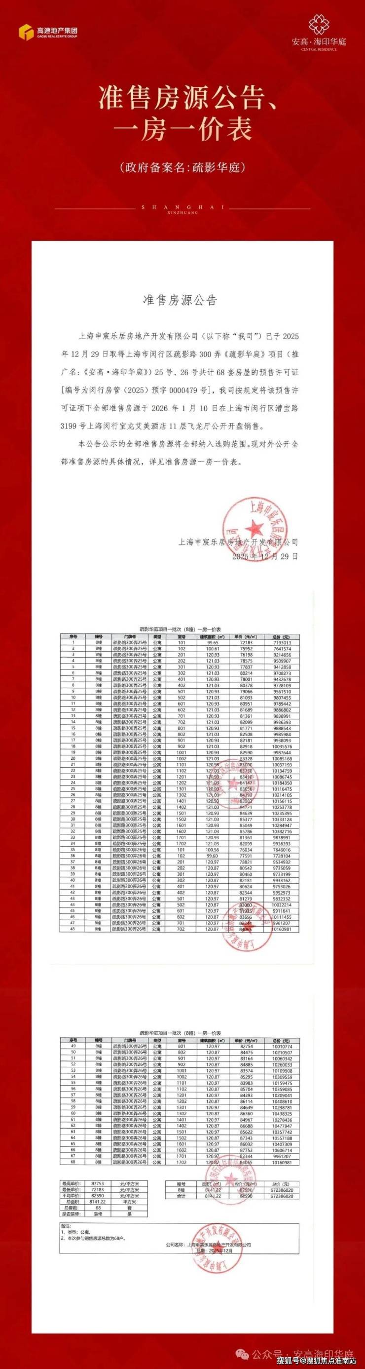 1、本资料为要约邀请,一切有关本项目及房屋的具体信息、图文、数据和买卖双方的权利义务以书面合同及政府最终审批文件为准。本项目推广名为“安高海印华庭”,政府备案名为“疏影华庭”,开发公司为:上海申宸乐居房地产开发有限公司,预售证号:闵行房管(2025)预字0000479号;