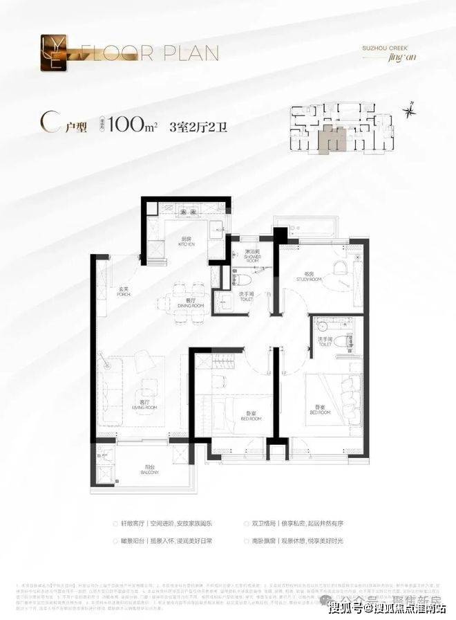 建面约100㎡3房户型✅✅悦97售楼处电话:400-891-9910✅✅