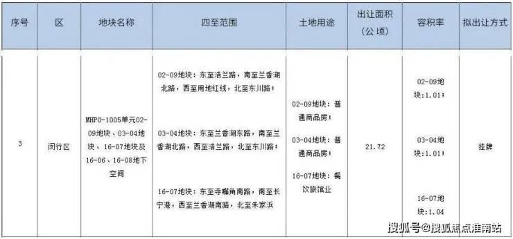 16-07地块:东至寺嘴角南路,南至长宁港,西至兰香湖南路,北至朱家浜;,土地用途餐饮旅馆业 ,容积率1.04。