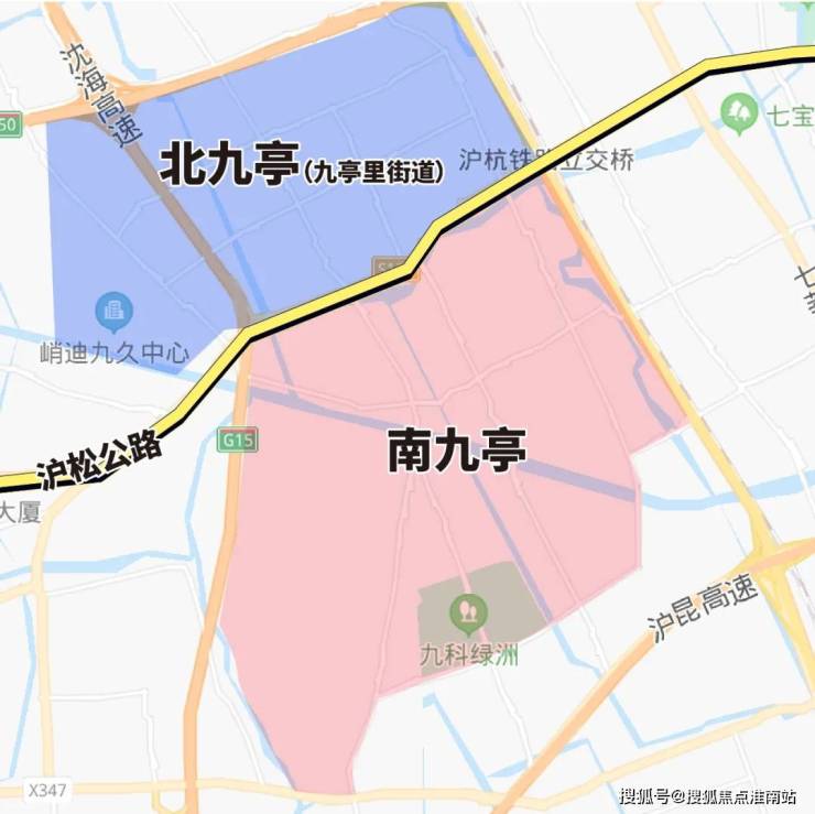 随后街道办事处移至沪松公路以北,所谓“北九亭”的概念出现,九亭也以沪松公路为界线有了南北之分。