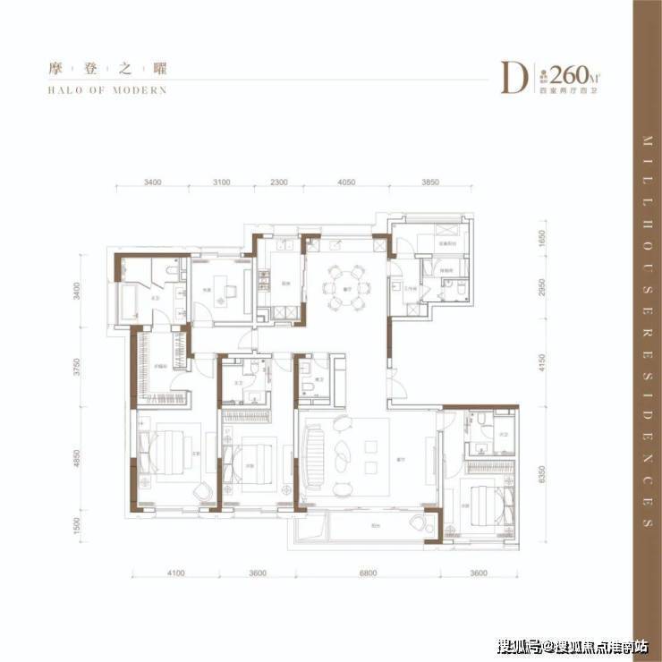 307㎡户型为四房两厅五卫的奢阔四室全套房设计!入户方式为独立户门厅设计,入门厅的面积已足足达到一个近房间大小,既尊显业主身份又增加了入户的尊贵仪式感!