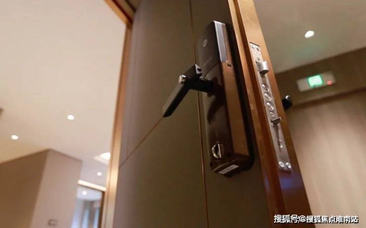 项目采用的真皮超大入户子母门的双门设计,与门厅内外的墙面整体设计相互融合,装修设计门的高度达2.3米,门板厚度7公分左右,耶鲁门锁在保障安全的同时也彰显着业主奢华的品味!