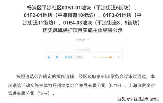2023年12月,中信泰富(87%)联合杨浦国资(13%)通过协议出让,以总价1143905万元,楼面价63127元/m²竞得4宗打包地块: