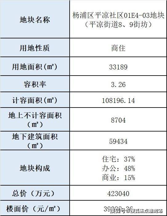 本次公示为01E4-03地块(平凉街道8、9街坊),占地面积33189方,容积率3.26,总建面176334方,地上计容建面108196,地上不计容建面8704方,地下建面59434方。拟建5幢15~17F高层住宅及大规模商业建筑。