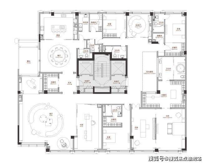 一期风貌平层G1户型:四房两厅六卫/458㎡