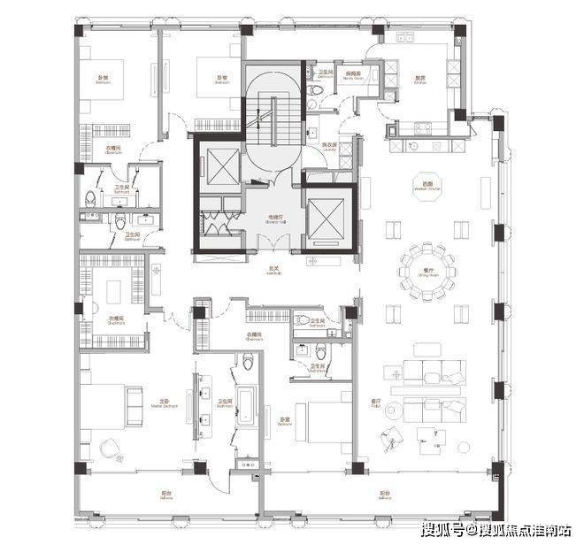 此外,二期风貌平层的户型宜居性直接满分。整个户型十字中轴的布局,方正无比的格局,卧室全套房的设计......无论是功能性还是尺度感都足以承载一个大家族的居住需求。