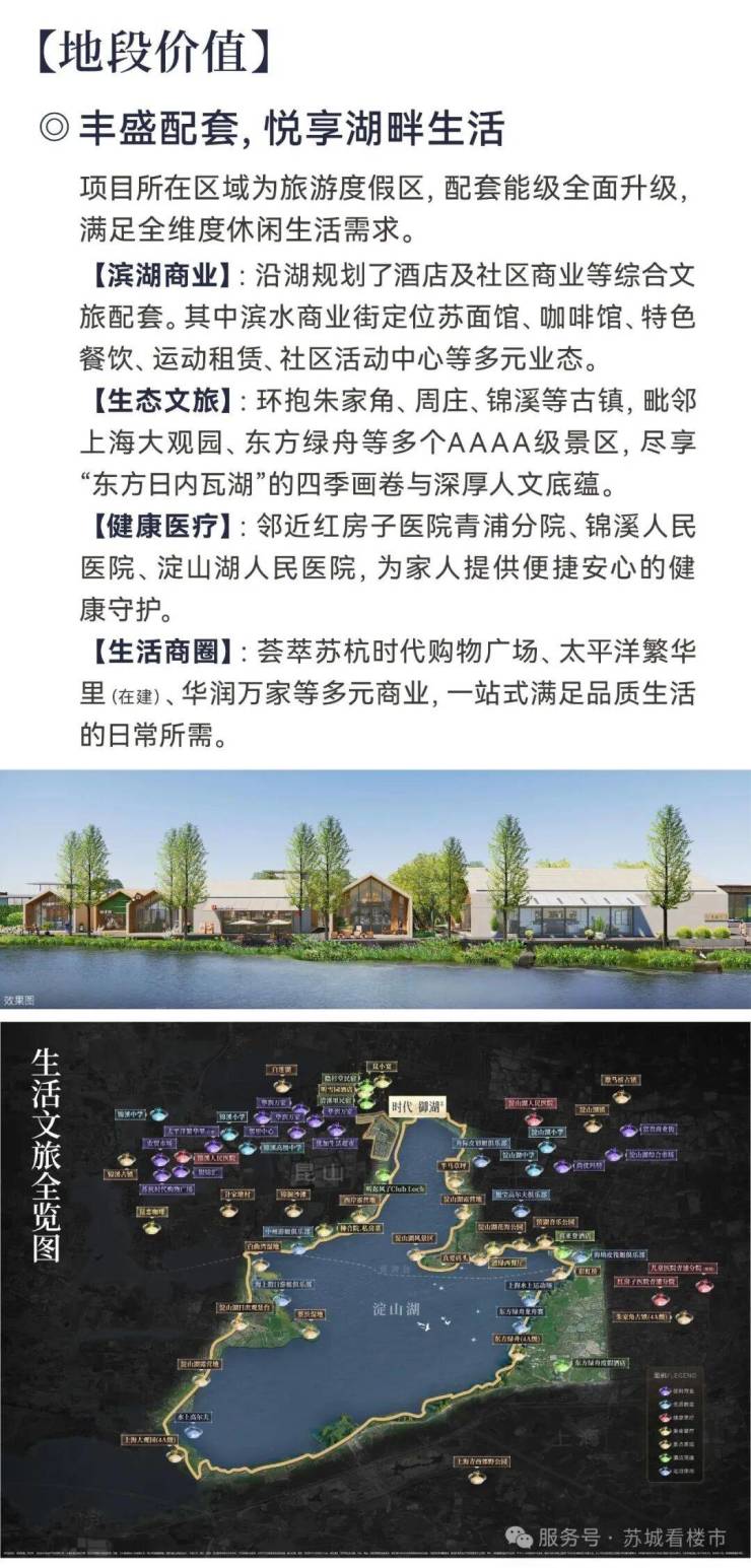 商业配套:步行800米达淀山湖镇中心商业街、邻里中心,生鲜超市、餐饮、便利店齐全;社区自带高端业主私属会所、环湖休闲步道,周边悦榕庄、安麓等顶奢度假酒店环绕