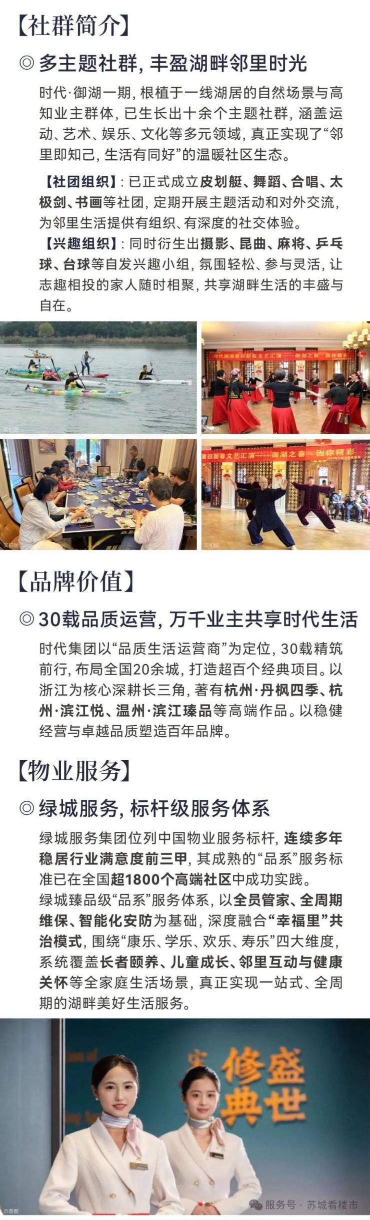 社群成熟:业主高层次、高收入、高满意度,社群成熟,已正式成立皮划艇、舞蹈、合唱、太极剑、书画等社团,定期开展主题活动和对外交流