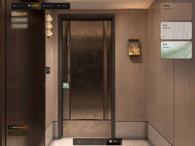 小到入户门把手、门牌号,大到石材背景墙、岛台、厨房墙面等关键界面,均可在澐启滨江提供的选项中挑选你最喜欢的风格、纹理。