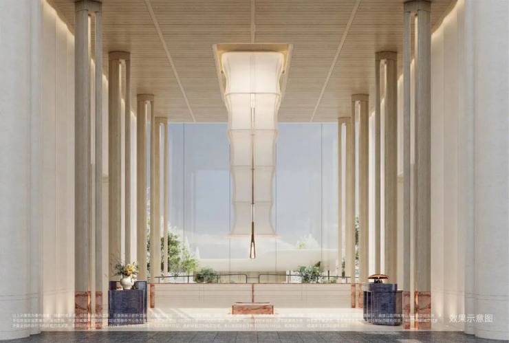 为充分利用核心景观的独特自然风貌,将十二维归家景观体系从城市界面、迎宾主入口车马院、归家大堂、下沉庭院、地下会所、景观风雨连廊、架空空间、地上大堂、中央景观轴、宅前景观以及入户门头,打造回应自然、林屿之感,精雕细琢生活小场景,让归家的旅程也是放慢速度的惬意环境。