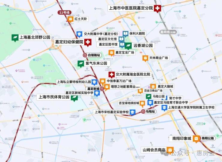 三甲医院瑞金医院北部院区、上海市中医医院嘉定新院均在10公里范围内