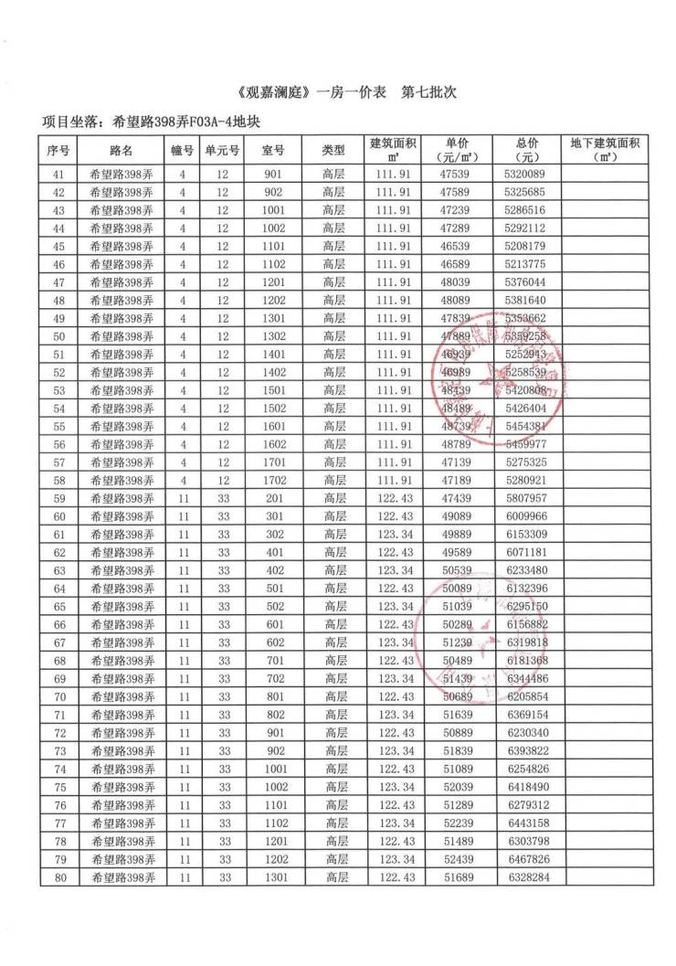 一房一价如下: