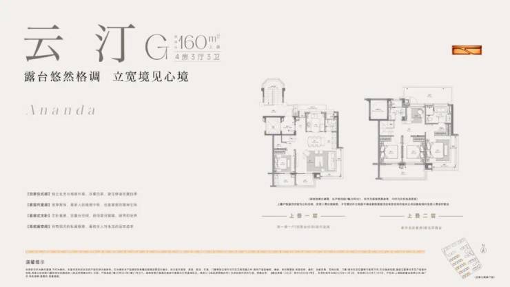 建面约160㎡上叠预计使用率最高约145%、约8.5m横厅双阳台、南北通透主卧套房。