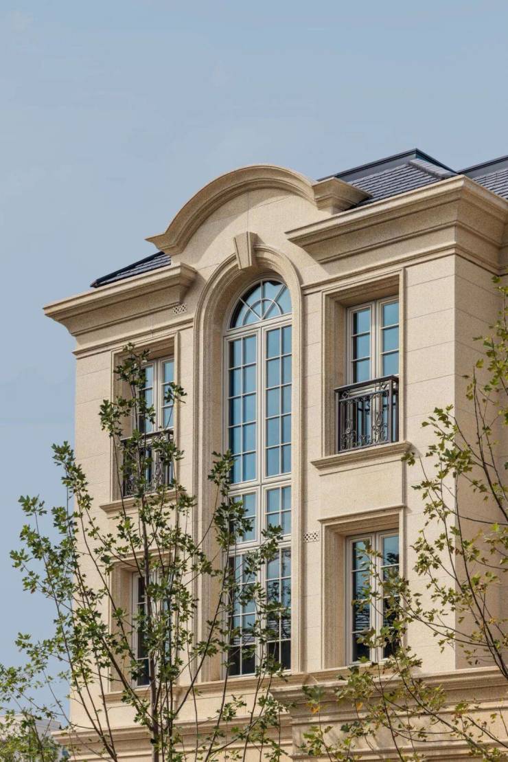 2. 去繁化简,符号典雅:突破传统法式小窗和窄面宽桎梏,采用大面积落地窗,超10米大面宽极致优化采光,消融室内外界限。修长纤细窗框比例,完美契合现代审美对通透与精致的双重追求。