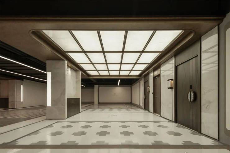 更精妙之处,在于对生活细节的极致打磨。叠墅不仅配置光厅与独立电梯入户,更将门牌以定制壁龛呈现,通过艺术化造型,彰显居者的独特品味与个性主张;立面则巧妙融入独立信报箱与快递存储柜,在保障私密性的同时,实现功能与美学的完美融合。