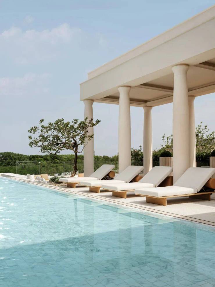 真正的经典从不止步于功能的奢侈,它是文化与个性的载体。杭州溪径恒庐以希腊安缦酒店的气质和空间氛围为设计灵感,充分借鉴其台地空间及立体游廊的设计手法,巧妙串联主入口、生活馆、地下会客厅、合院及叠墅等多重业态,打造近2万方超大规模全维体验的立体示范区。东南角的生活馆规划女王空间、棋牌室、儿童书房等社交场域,每层独享专属景观,更以灵动弧形阶梯有机衔接,凝练成本项目独一无二的「石语台地」。