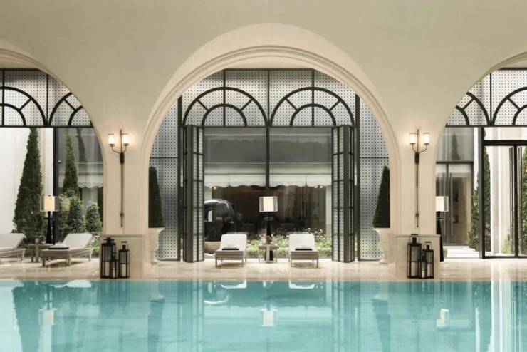根植于桃花源板块的深厚积淀,杭州溪径恒庐,是对法式大宅经典范式的一次深度回溯与创造性转译。项目摒弃传统宫廷法式的繁复堆砌,转而从现代法兰西优雅生活的典范中汲取灵感:以香奈儿艺术总监卡尔·拉格斐的蔚蓝海岸私邸 Villa La Vigie的度假气质为精神内核,并提炼凡尔赛华尔道夫酒店立面的经典比例与精工细节,呈现“更自由、更灵动”的浪漫法式风范。