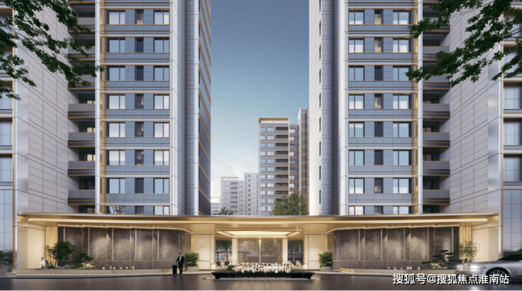 现代简约建筑风格,采用大面玻璃搭配铝板保温一体板,打造“轻盈不失雅致”的隐贵立面。钢琴键般的立面层次感、香槟金铝板塔冠,形成瞩目的城市标识。