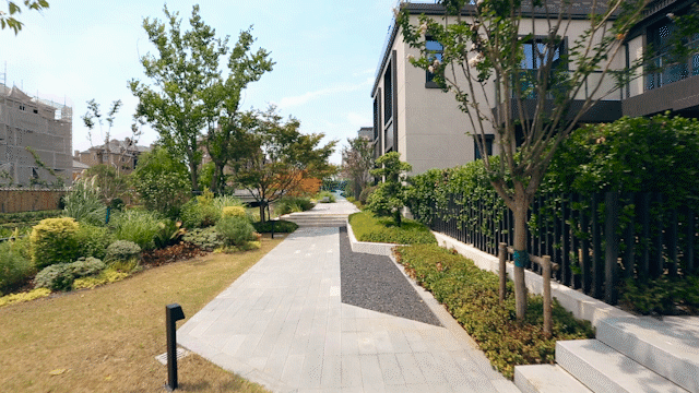 走进上实·和风院内部,仿佛漫步于一座 江南园林,一花一草一木,活水潺潺,能让久居城市喧嚣的浮躁心灵得以憩息。