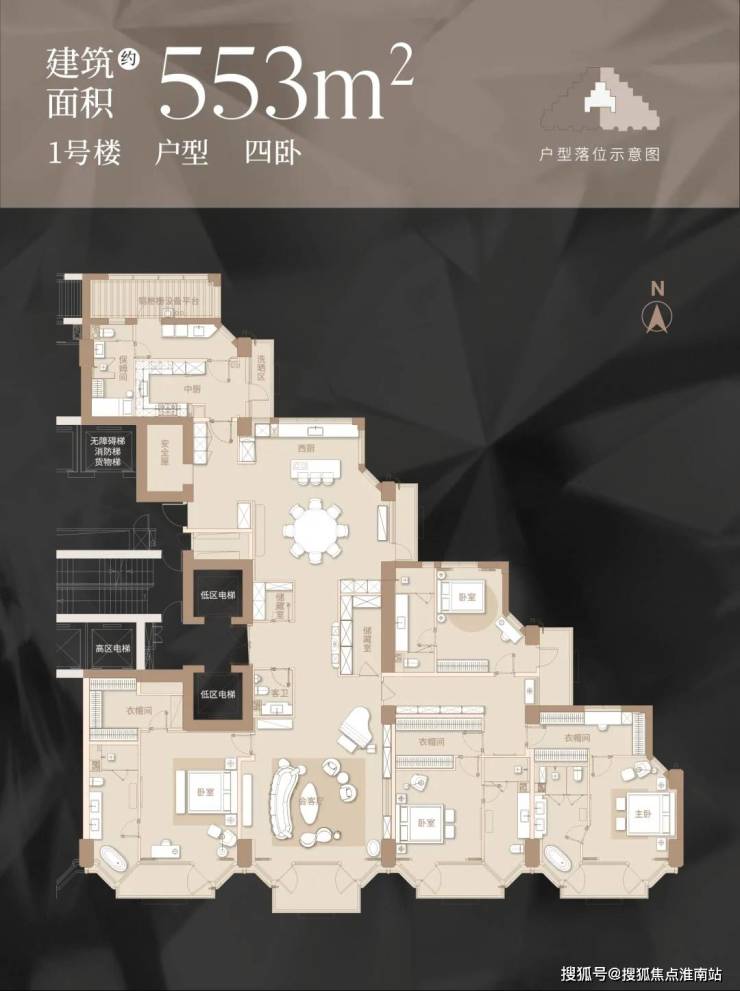 从户型来看,高层主力 260-882平米,豪华主卧套房、120平米超大 LDK+X 空间,还有 270 度转角落地窗、16 米宽花园阳台。