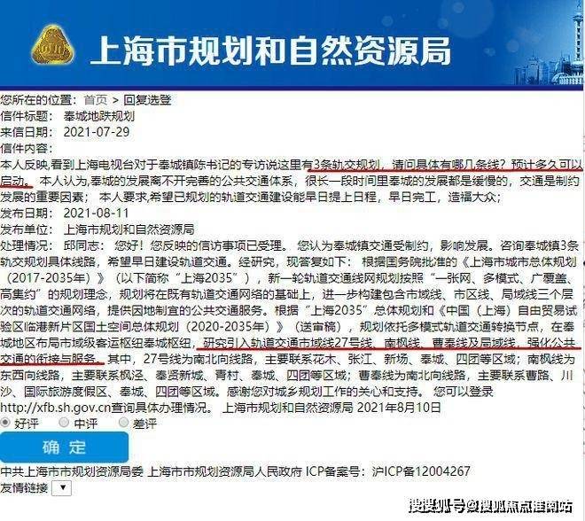 奉城医院(公立二甲)距离项目2.8公里,8分钟车程,公交奉城3线5站10分钟