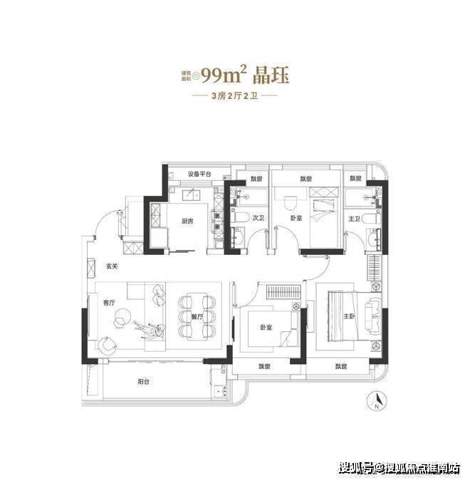 作为目前火爆认购中的压轴之作,不仅拥有正央的位置、阔绰的景观、超大的楼距视野等外在条件,建面约99m²的整体户型设计,也为右岸满分生活留下难以复制的注脚。