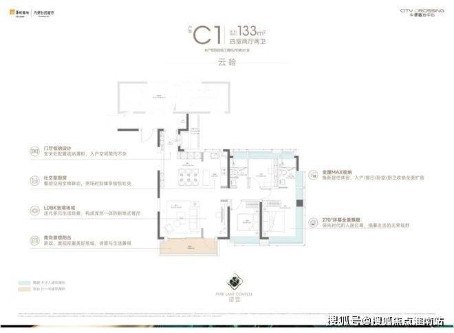 133㎡的四房产品是项目的明星户型,板块内以及整个中环难得的改善型作品。