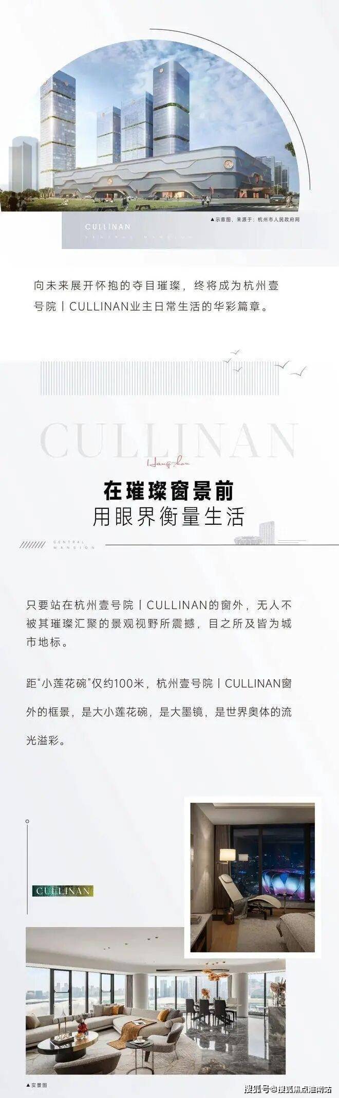杭州壹号院最后的商业大户型“CULLINAN”,距莲花碗仅约400米,是离这个超级IP最近的硬核资产之一。首先是它无与伦比的站位,窗外就是大小莲花碗、杭州之门、大墨镜、钱塘江、日月同辉、来福士,仿佛每天都能和伟大的事物发生感应。