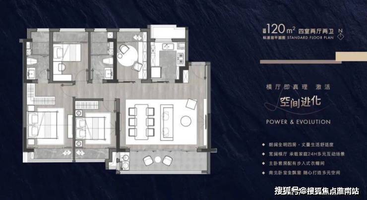建筑面积约102-143㎡进阶户型带来全生命周期的舒居空间,全横厅设计诠释大尺度场景,阔境阳台、主卧套房设计,配备有独立卫生间和衣帽间,满足面面俱到的理想人居。